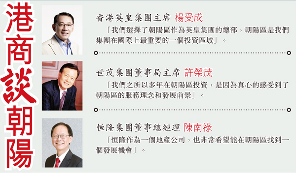 香港英皇集團主席 楊受成:「我們選擇了朝陽區作為英皇集團的總部,朝陽區是我們集團在國際上最重要的一個投資區域」。