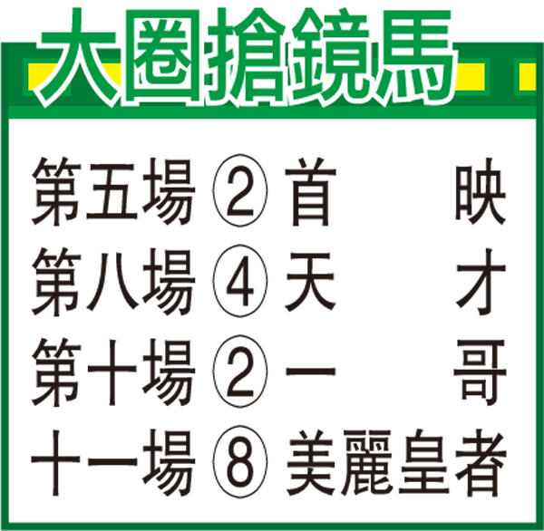 「首映」試手試兩段,主動搶走懶性大減,比前輕身,出腳變得開揚,馬身脹卜卜,此乃成長表現。