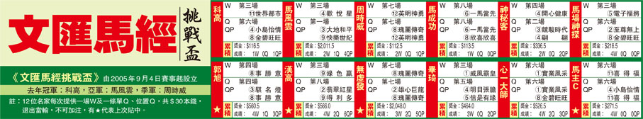 《文匯馬經挑戰盃》由2005年9月4日賽事起設立