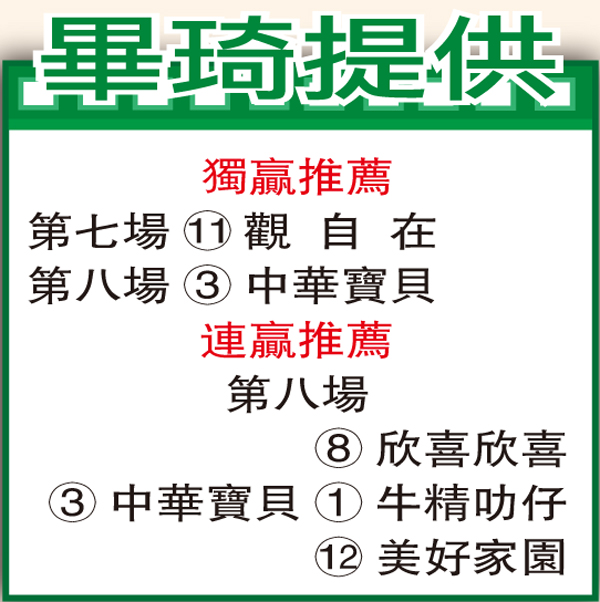 「獨具慧眼」助手踱一圈,沿外檔大步輕鬆走返一氣呵成,馬身收實,神態生猛,觀感甚佳。