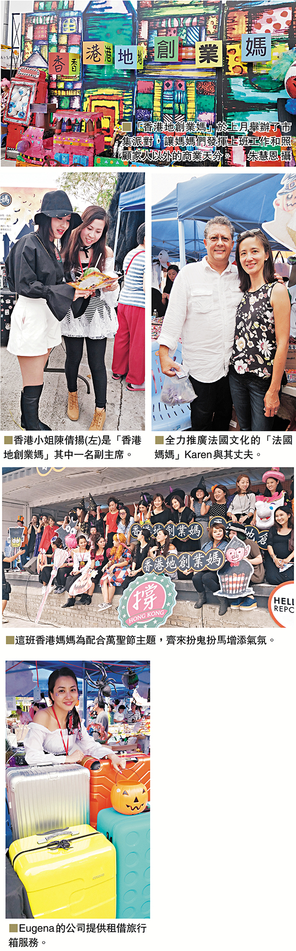 在「哈佬喂」前夕,馬鞍山白石燒烤場舉辦一場盛大的萬聖節市集派對,當天不但有盛大的舞台表演,更有數十個攤位售賣各類產品,儼如一個大型嘉年華。原來,在這背後是由一個組織──「香港地創業媽」的媽媽們含辛茹苦「孕育」出來。