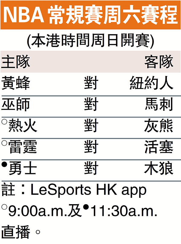 NBA常規賽周六賽程