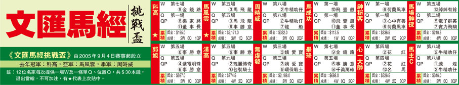 註:12位名家每次提供一場W及一條單Q、位置Q,共$30本錢,退出當輸,不可加注,有★代表上次貼中。
