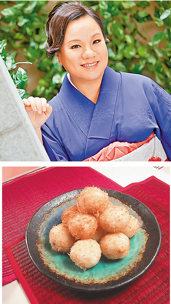 2. 珍珠米飯分作8小份,每份包入1小份花生味噌餡,搓成小球狀飯團﹔