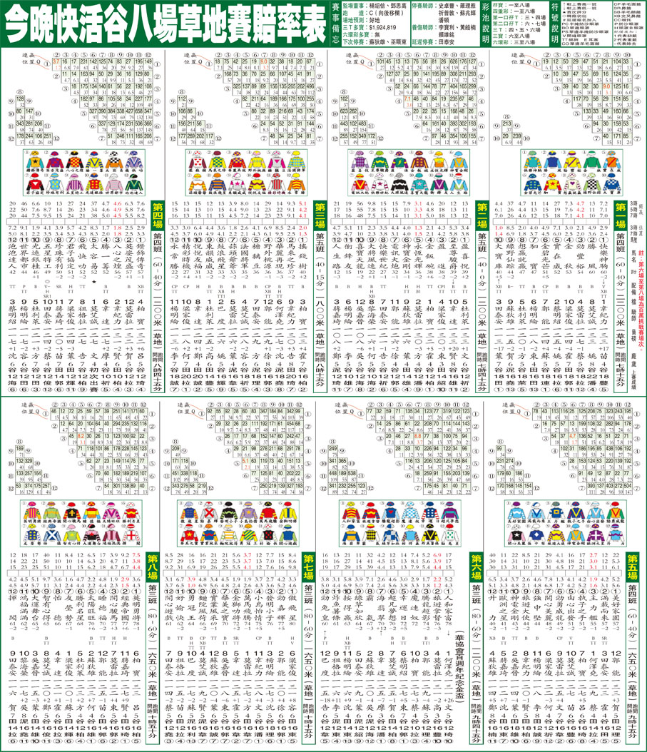 今晚快活谷八場草地賽賠率表