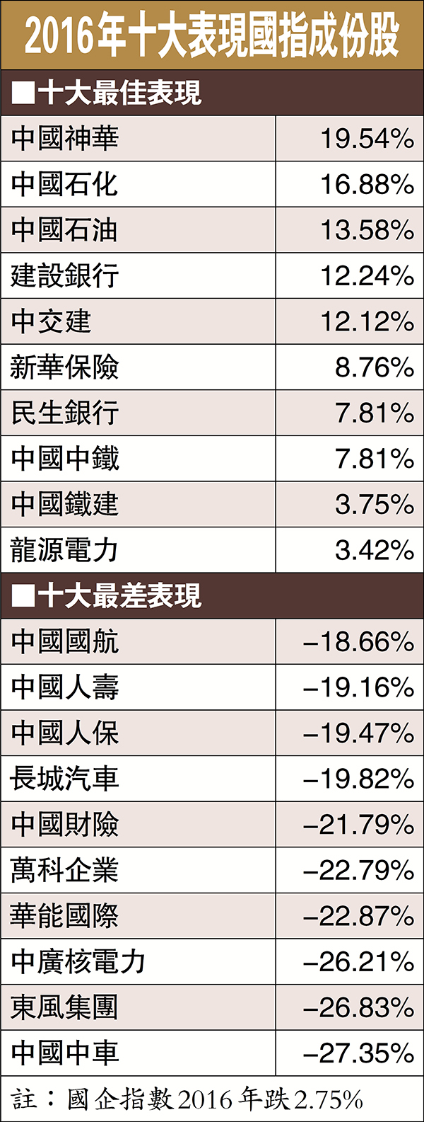 2016年十大表現國指成份股