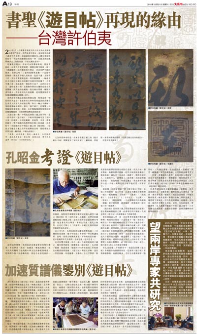 日前,台灣高雄大學已經定於2017年11月3日為許伯夷先生收藏的《遊目帖》(半帖)舉辦國際學術研討會,由王學亮校長親自主持,廣泛邀約專家學者與會研討,為中華文化做出進一步的貢獻!
