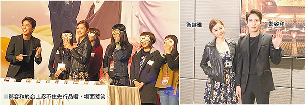 香港文匯報訊(記者 陳敏娜澳門直擊)韓國男星鄭容和昨日偕同衛詩雅假澳門新濠影匯舉行《決戰食神》摘星廚神見面會,有1,000名粉絲入場支持。容和用中文和廣東話打招呼,還與20名粉絲玩試味遊戲,明明是粉絲試吃,他卻忍不住先行品嚐,遇到難吃的食品時一臉難受的樣子,非常搞笑。本來他想親餵粉絲試味,但現場粉絲大叫「不」,只好由詩雅代餵。