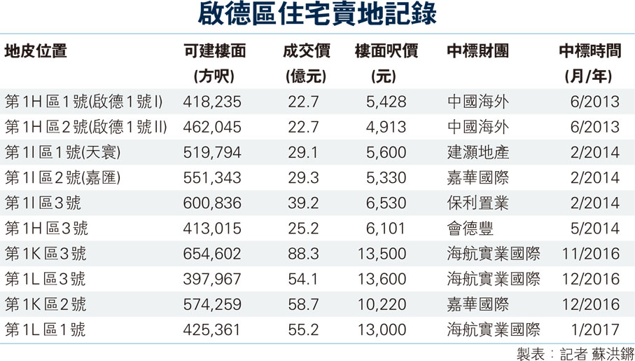 啟德區住宅賣地記錄
