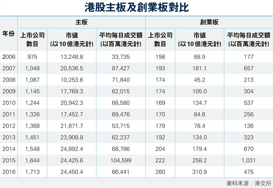 港股主板及創業板對比