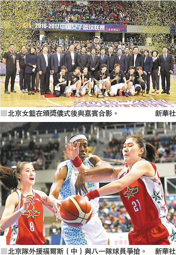 另外, 2016-2017賽季WCBA(中國女子籃球聯賽)前晚落下帷幕,北京女籃以96:77再度主場獲勝,在5戰3勝制的總決賽中以3:0橫掃八一隊,繼上賽季奪冠後成功衛冕。 ■中新社