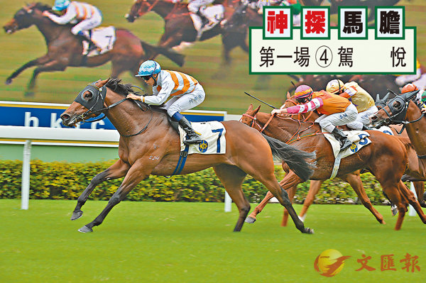 第一場、第五班、一六五○米。「駕悅」蓄銳後作縮程安排充滿新鮮感,埋門精神奕奕,狀態正銳。「大天龍」近試步靈活力度足,毛色深潤,態況持續提升。「靚先生」轉廄後已連番試準,本身跑法能跟可鬥,若有此程氣量,照計坐位可望贏。「超甜橙」近見神態活躍有火氣,馬身紮實,狀態已達高峰水平。