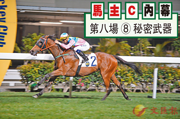 第八場、第三班、一二○○米。「秘密武器」由去年十一月起重戴眼罩上陣,至今出戰四次,首場在田草跑輸;之後三場出爭谷草千二跑獲兩冠一亞成績出色,看來眼罩真的管用。回看近兩場遇過的對手皆並非善類,今次升上三班負磅有利,交出水準有力締造三連霸佳績。