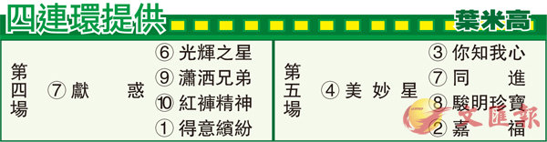 第五場、第三班、一二○○米。「美妙星」來自澳洲,出自美國著名種馬「金獎章」,外祖父為「杜拜威」,來港前隸屬高多芬馬房,由練馬師奧詩訓練,從未出過大場上陣,五戰獲兩冠一亞,頭馬於鶴斯百里及甘柏拉馬場所得,一匹出自名種,又屬大馬房名下賽駒,為何不挑戰周末較高級數賽事而集中在鄉村馬場兼又肯放售?估計幕後認為牠並非爭取大賽分子,所以退而求其次務求能以好價出售予買家。「美妙星」來港後曾試千二米谷閘後上勝出,證明並非已被用殘之流,身處三班必夠實力爭勝;上次初出谷草千二米排外檔下後追第三,熱身後料可取得補中。