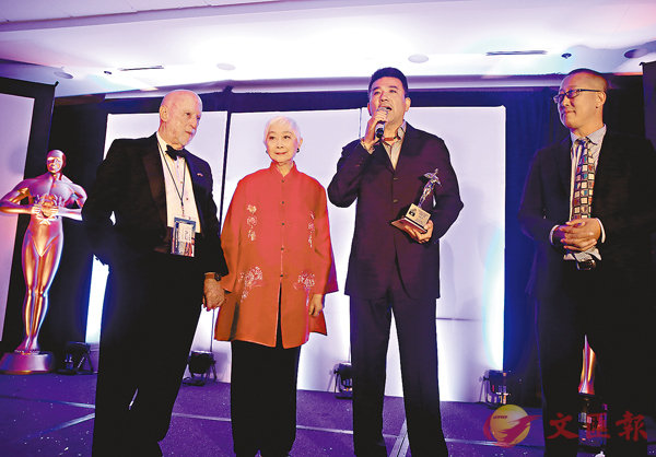 ■第50屆休斯敦國際電影節日前舉辦「中國之夜」活動,為「全景中國」單元在三年內發展成中國電影在北美電影市場最大的展映平台,弘揚中華傳統文化。今年有33部中國影片在「全景中國」單元作北美首映,眾多優秀的中國獨立電影與短片作品相繼登場,休斯敦國際電影節主席亨特托德(左一)、奧斯卡終身評委盧燕(左二)、「全景中國」主席蔣銳(右一)為獲得傑出貢獻獎的內地演員孫淳(右二)頒獎。 中新社