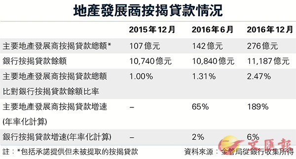 地產發展商按揭貸款情況