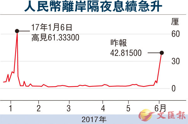 也有分析認為,跨月結算和端午節假期,也對香港離岸匯率趨緊有一定影響,本周一由於英、美及中國在岸市場假期休市,銀行只能在香港市場拆借資金,也導致離岸人民幣的拆息急漲原因。