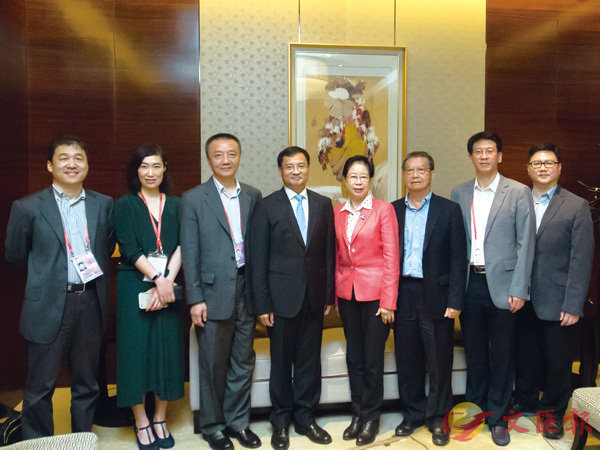 ■5月3日,香港紡織商會會長蕭盧慕貞(右四)、永遠榮譽會長黃守正(右三)、常務副會長兼秘書長林偉豐(右一)一行赴廣交會,與中國紡織品進出口商會新會長曹甲昌(左四),副會長王宇(左三)、張錫安(右二)等會晤。