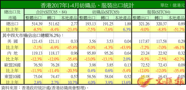 ¾Ú´ä©²²Îp³B¸ê®Æ¡A¤µ¦~1-4¤ë»´ä¯¼Â´«~¡BªA¸Ë¡]¤U²ºÙ¯¼¦ç¡^¥X¤f514.39»õ´ä¤¸¡A¸û¥h¦~¦P´Á´î8.5%¡AÁö¸û¥h¦~¥þ¦~´î´T14.2%¦³©ÒÁY¤p¡A¦ý¤´¥¼Â\²æ¤U¶^ªº¶ÕÀY¡C¨ä¤¤ªA¸Ë321.26»õ´ä¤¸´î´T9%¡AÄò¤j©ó¯¼Â´«~¡]193.13»õ´ä¤¸´î7.5%¡^¡C