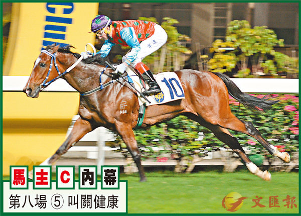 第八場、第三班、一二○○米。「叫關健康」馬如其名,自從去年十二月開上戰線以來,保持每月一戰的部署,至今七戰取得兩冠兩亞兩季一殿軍平穩成績,最難得長期由韋達主理之下,陣上表現依然穩定,已經相當了得;再看上賽韋達停賽改由杜利萊執韁,沿途搶放力戰僅負第三;今次乘勇再戰此程,乃三甲爭霸之材。