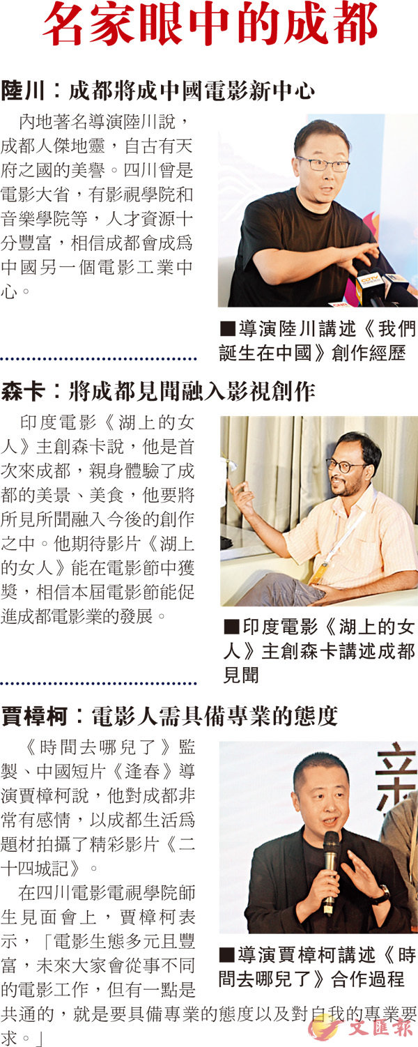 《時間去哪兒了》監製、中國短片《逢春》導演賈樟柯說,他對成都非常有感情,以成都生活為題材拍攝了精彩影片《二十四城記》。