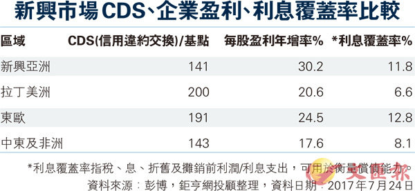 相較之下,亞洲主要國家在政治上的穩定度相對較高,投資環境自然優於其他新興國家。從衡量國家違約風險的CDS來看,新興亞洲整體CDS為141個基點,遠低於拉丁美洲及東歐的200及191個基點。