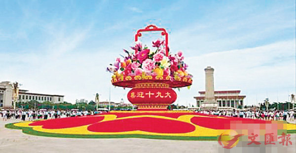 今年國慶節,「祝福祖國」巨型花籃將再現天安門廣場。據悉,今年的大花籃將以喜慶的「花果籃」為主景,頂高17米、籃體高15.3米,底部花壇採用心形圖案,底部直徑達50米。籃體南側寫有「祝福祖國,1949-2017」,北側寫有「喜迎十九大」。圖為效果圖。■文:新華社 / 圖:網上圖片