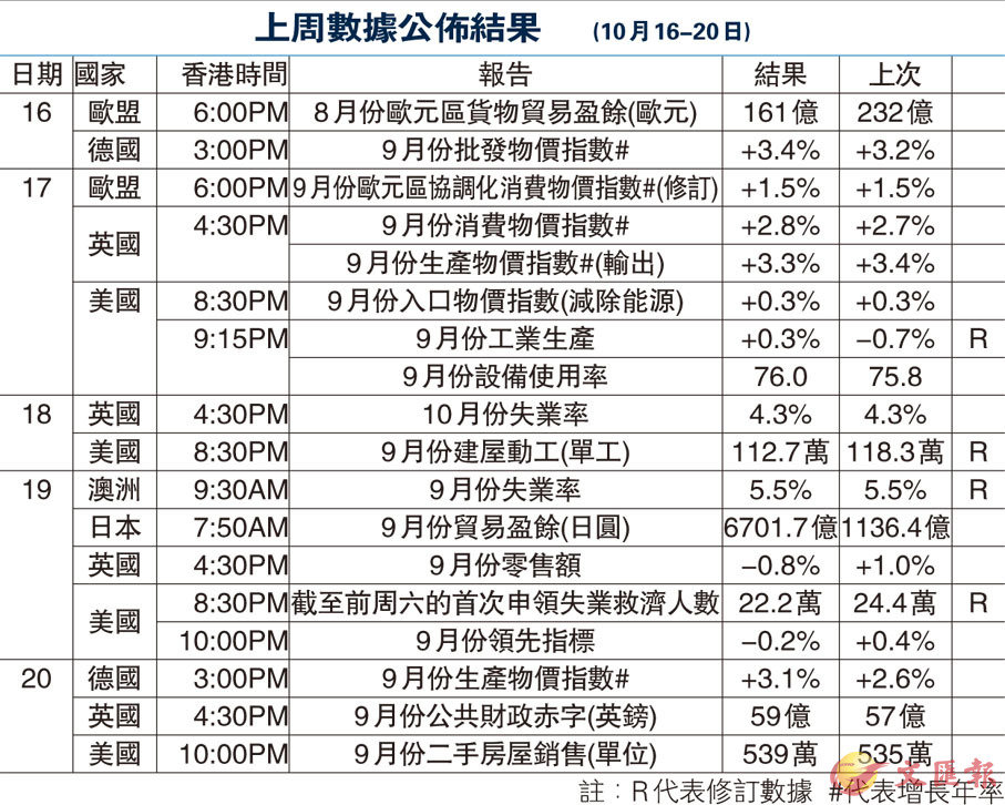 上周數據公佈結果 (10月16-20日)