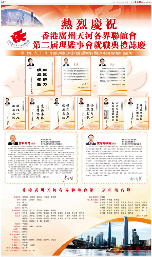 熱烈慶祝香港廣州天河各界聯誼會第二屆理監事會就職典禮誌慶