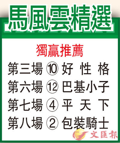 「包裝騎士」戴頭罩由助手踱,緊扣韁約束沿中檔三腳跳輕抒腳頭,主動谷起馬頸扯走,馬身無半點多餘脂肪,力度增強,狀態持續高企。