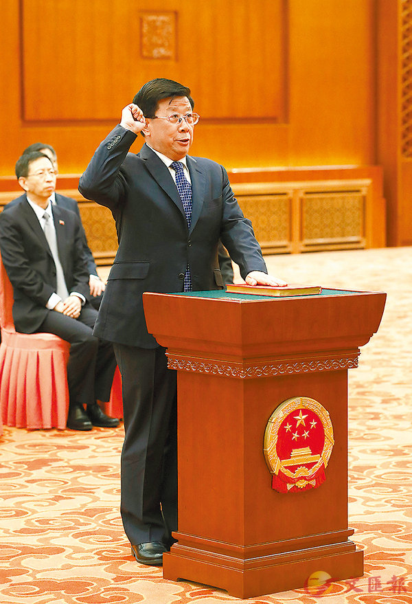 昨日,十二屆全國人大常委會在北京人民大會堂舉行憲法宣誓儀式。全國人大常委會副委員長艾力更·依明巴海主持並監誓。十二屆全國人大常委會第三十次會議任命趙克志為公安部部長。