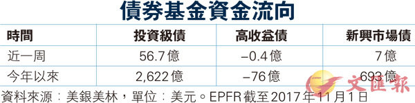 歐美央行續鴿派主導,債市「歡騰」。觀察最新資金流向顯示,EPFR截至11月1日止的一周,投資級債淨流入金額擴大至56.7億美元(約442億港元),創下今年2月以來新高;新興市場債持續獲7億美元(約54.6億港元)淨流入。在高收益債部分,受惠油價再創2015年6月以來新高,淨流出資金縮減至4,000萬美元(約3.12億港元)。■安聯投信
