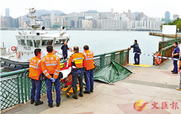 紅磡維港海面發現身份不明女浮屍。昨午1時許,一艘負責海上清潔的船隻,發現一具年約25歲至40歲中國籍女子在海面漂浮,消防及水警接報到場將女子撈起,載返環海街大環山泳池登岸,證實她已死去多時。警方遂用帳幕遮蓋屍體調查,在其身上未發現身份證明文件及遺書,死者身穿灰色及黑色間條上衣,藍色牛仔褲及黑色運動鞋,其身份及死因仍待驗屍及調查確定。事件初步相信無可疑,暫列作發現屍體案跟進。