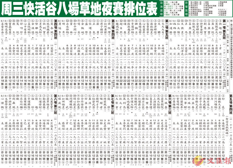 周三快活谷八場草地夜賽排位表