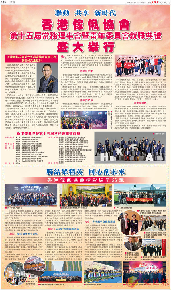 香江之濱,星光熠熠。2017年12月19日晚,香港家私協會「聯動•共享-第十五屆常務理事會暨青年委員會就職典禮晚宴」 假座香港灣仔會議展覽中心1樓會議廳舉行,偉安發展有限公司董事總經理張呈峰先生榮膺第十五屆常務理事會主席。值此喜慶良機,近千名國內知名商家,政府部門首長及議員、社會各界知名人士、社團機構聚首盛典,共話未來。