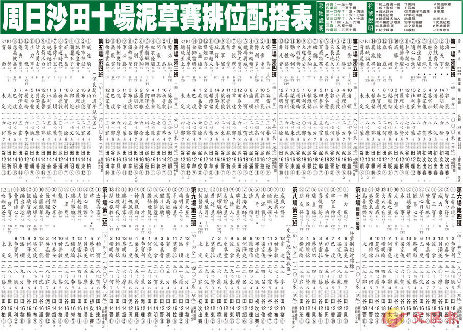 周日沙田十場泥草賽排位配搭表