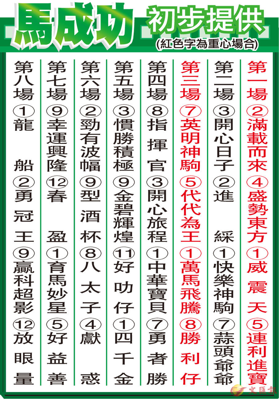 馬成功初步提供