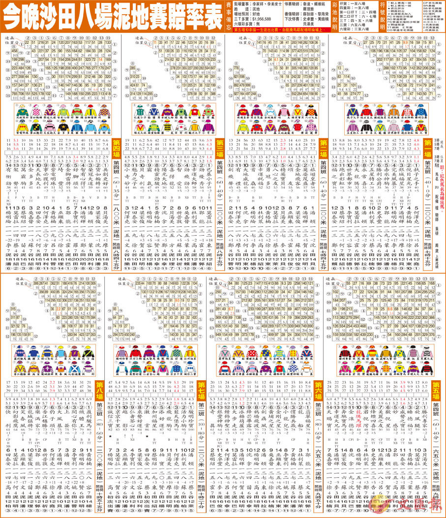 今晚沙田八場泥地賽賠率表