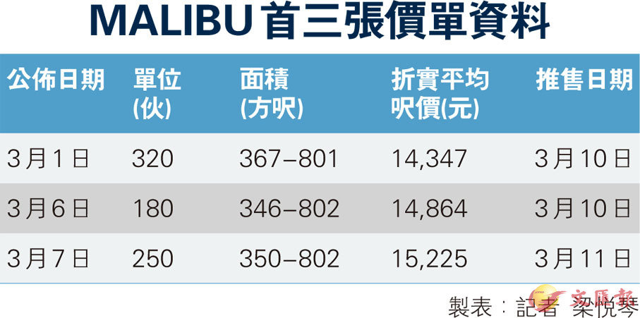 MALIBU首三張價單資料