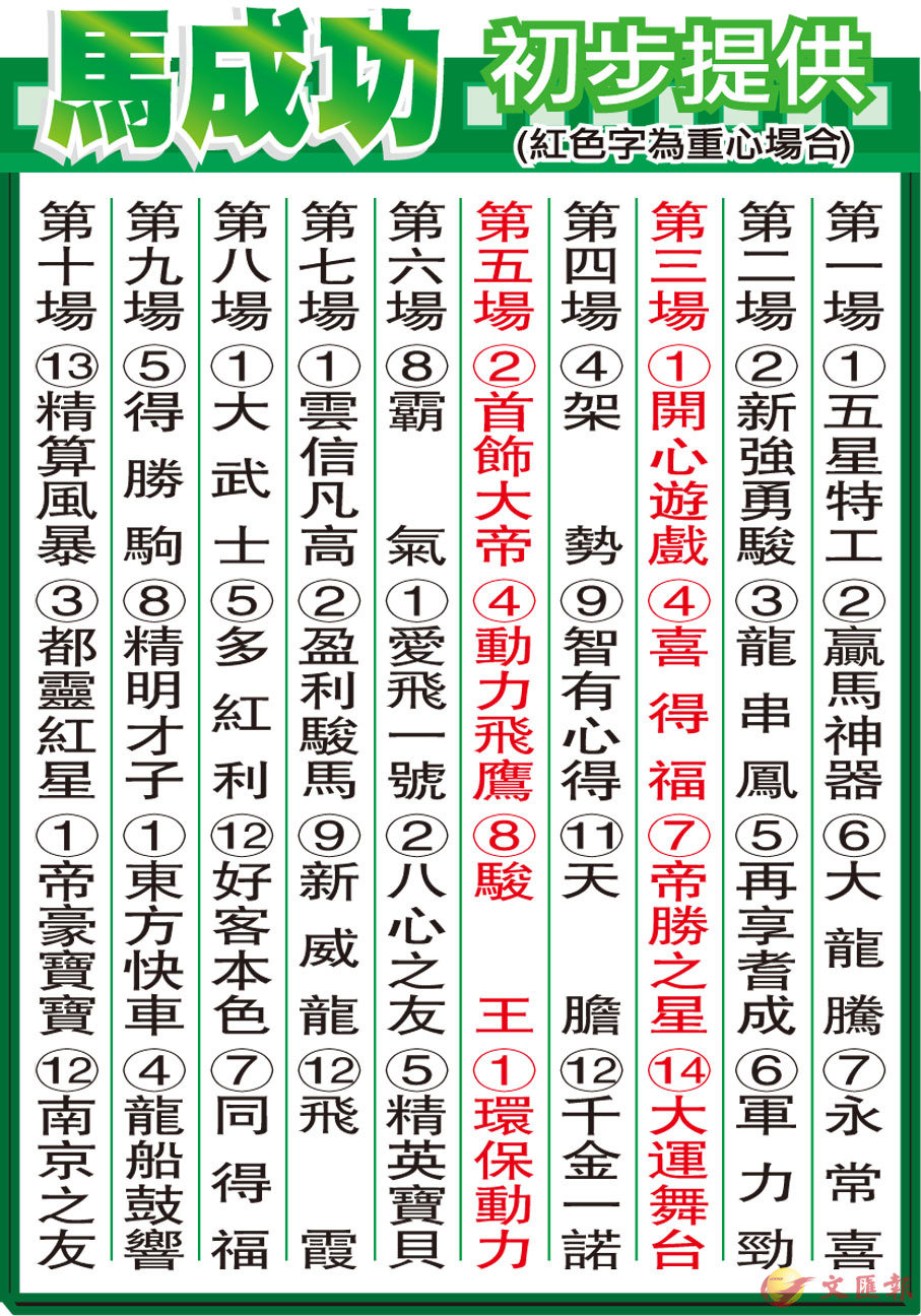 馬成功初步提供