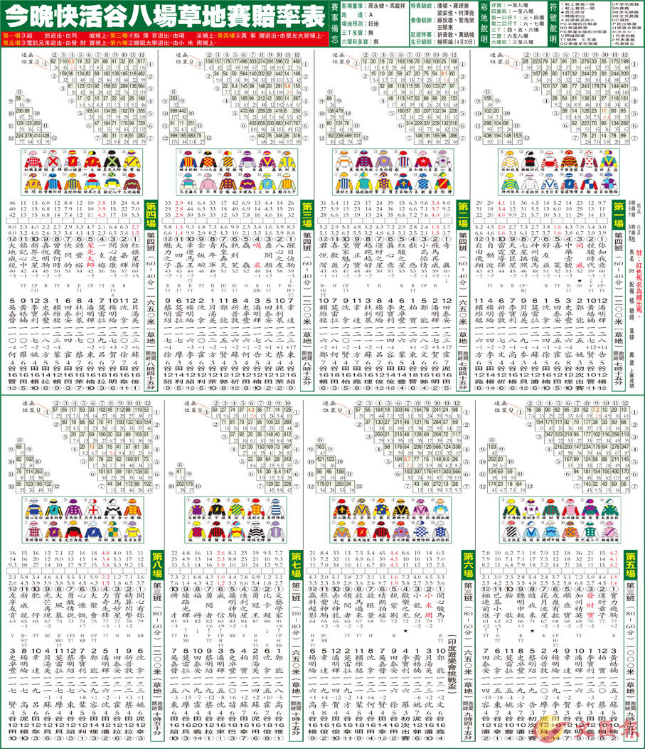 今晚快活谷八場草地賽賠率表