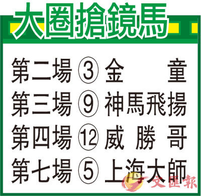 「金童」沈拿試兩段,扣住韁約束中內檔近欄輕鬆慢走,到末段紋風未動下自略加快衝,步低揚勁貫注姿態悠揚,身形粗壯,毛色鮮潤光采,生猛心火足,狀態保持上佳水準。