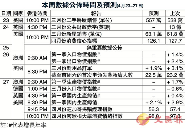 本周數據公佈時間及預測