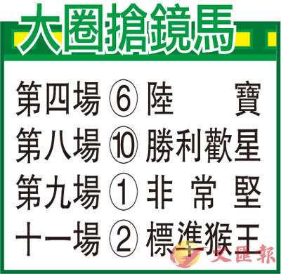 「標準猴王」助手試一段,緊扣韁中檔控制步速慢走,到直路始輕輕放鬆,見奮力加快越衝越勁,步開揚咬地力均勻,身輕肌肉紮實,毛色光潤亮麗,神清朗心火蘊藏,態未走樣。