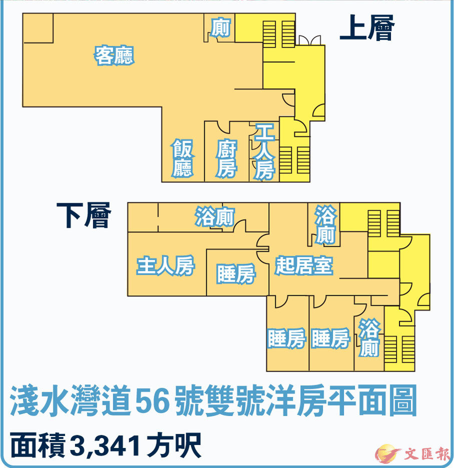 淺水灣道56號雙號洋房平面圖(面積3,341方呎)