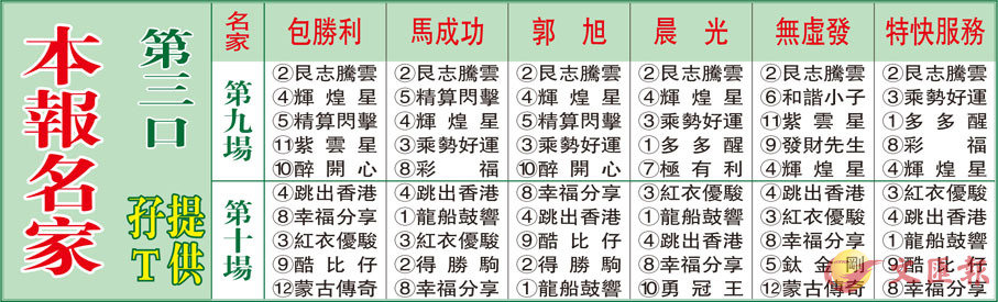 本報名家第三口孖T提供