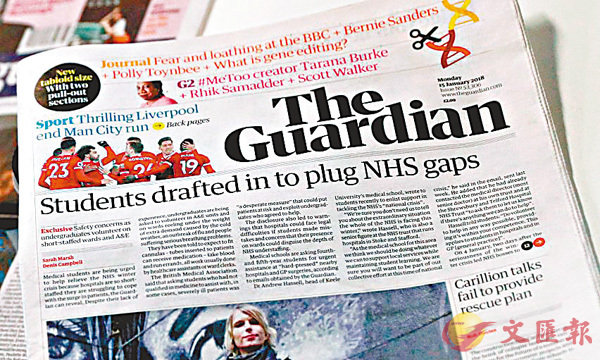 英國《衛報》母公司衛報傳媒集團(GMG)前日表示,《衛報》電子版上個財政年度收入上升15%,增至1.086億英鎊(約11.22億港元),歷來首次超越印刷版業務的收入。