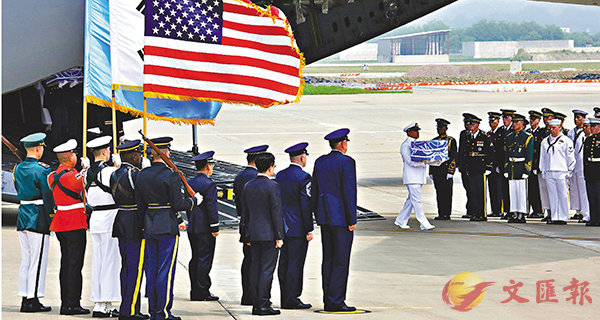 在昨日朝鮮戰爭停戰協定簽署65周年的日子,朝鮮向美國歸還55具朝鮮戰爭陣亡美軍遺骸,由美軍運輸機運返駐韓國美軍基地。遺骸經軍方人員鑑定後,將於下周三送返美國。白宮發表聲明稱,對朝鮮的行動感到鼓舞,美國總統特朗普在twitter貼文,表示過了這麼多年,這對很多家庭來說是重要一刻,為此感謝朝鮮領導人金正恩。