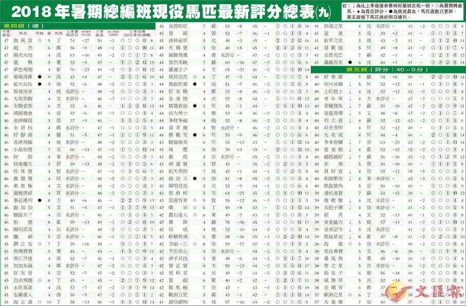 2018年暑期總編班現役馬匹最新評分總表(九)