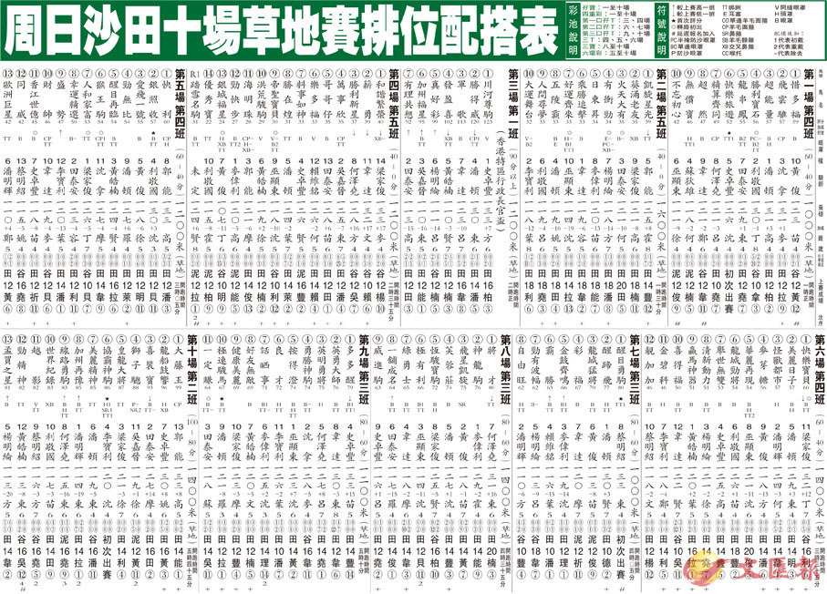 周日沙田十場草地賽排位配搭表